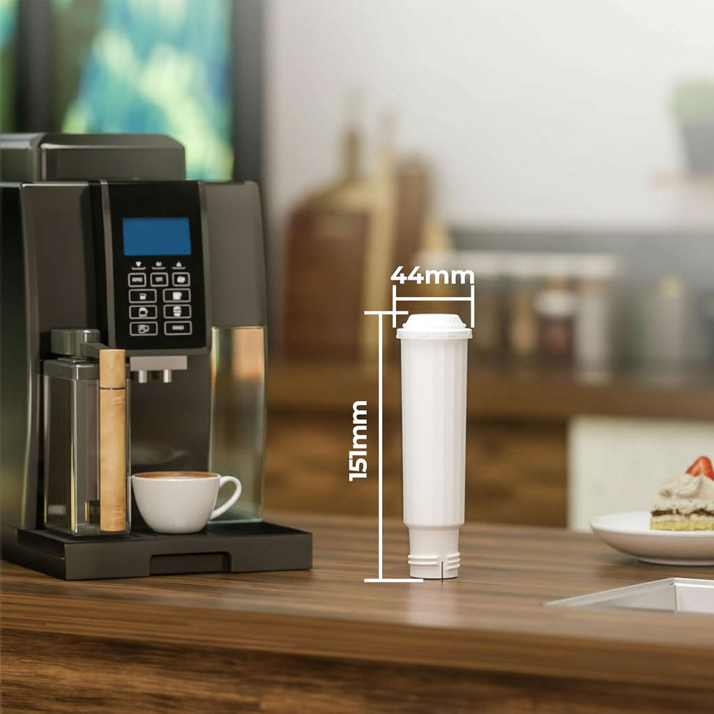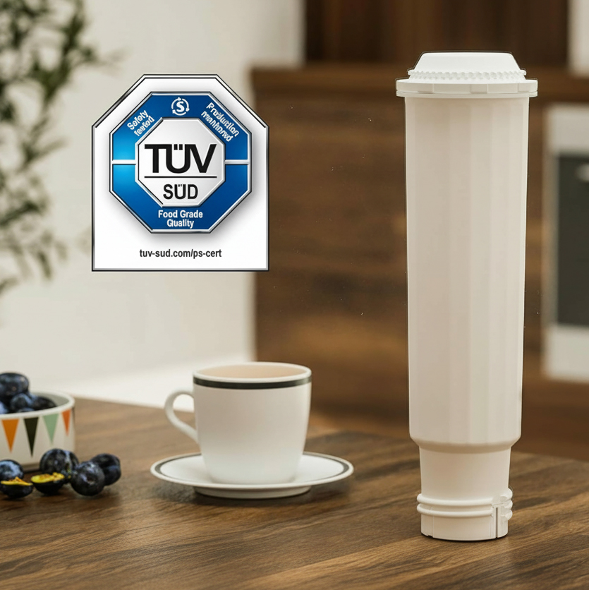 A kompatibilis szűrőpatron kiváló minőségű anyagokból, például természetes kókuszdióhéj aktív szénből és ioncserélő gyantából készült, hatékonyan csökkenti a klórt, a rozsdát, a vízkövet és a lerakódásokat harmadik fél laboratóriumában végzett vizsgálatok alapján, és nagy mértékben biztosítja az ivóvíz tisztaságát, és javítja a kávé ízét.