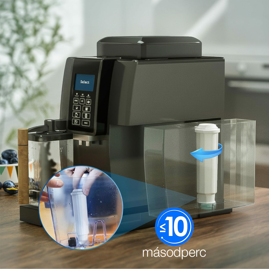 A megfelelő minőségű víz – mint a jó minőségű kávé vagy a megfelelő őrlésfinomság – minden presszókávé fontos eleme, az optimális íz elérése érdekében legjobb, ha szakszerűen meg van szűrve.